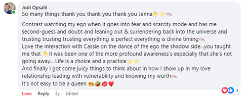 Being part of the program is like stepping into a world of transformation, empowerment, and vibrancy. You’ll experience a sense of community, support, and personal growth that feels FUN and inspiring (not like grind work!). Think: celebration, magic, miracles, synchronicities… and a ton of fun.